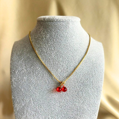 Cadena con dije , enchapada en oro, y piedras engarzadas