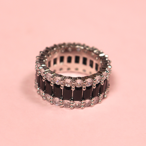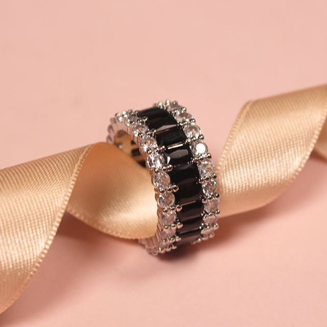 Anillo de plata rodinada, con piedras engarzadas