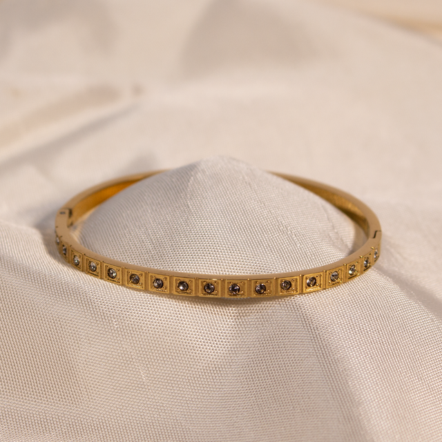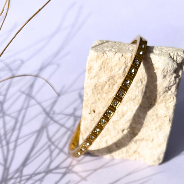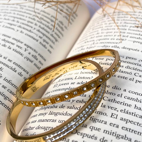 Pulsera de acero hipoalergénico bañada en oro 18k. Resistente, liviana y perfecta para uso diario.