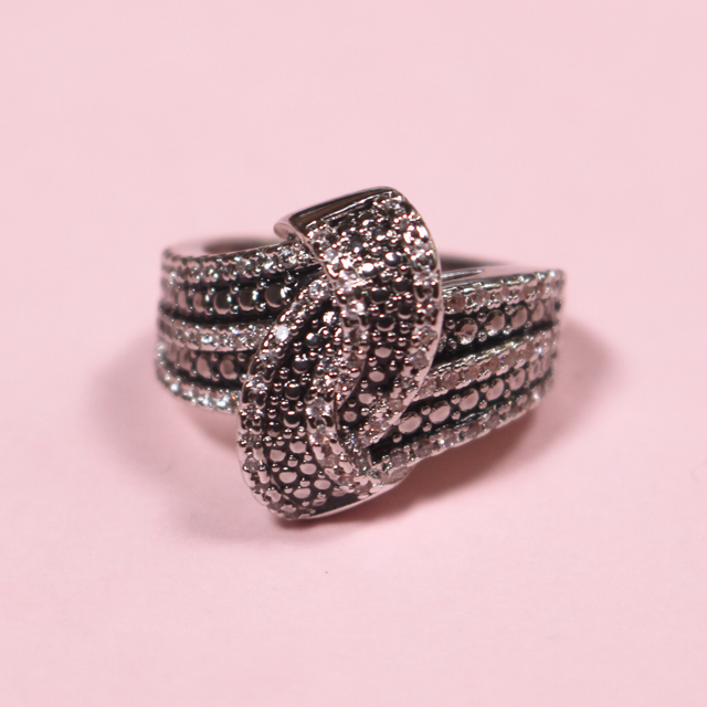 ANILLO DE PLATA CON PIEDRAS GRISES ENGARZADAS, TALLE UNICO